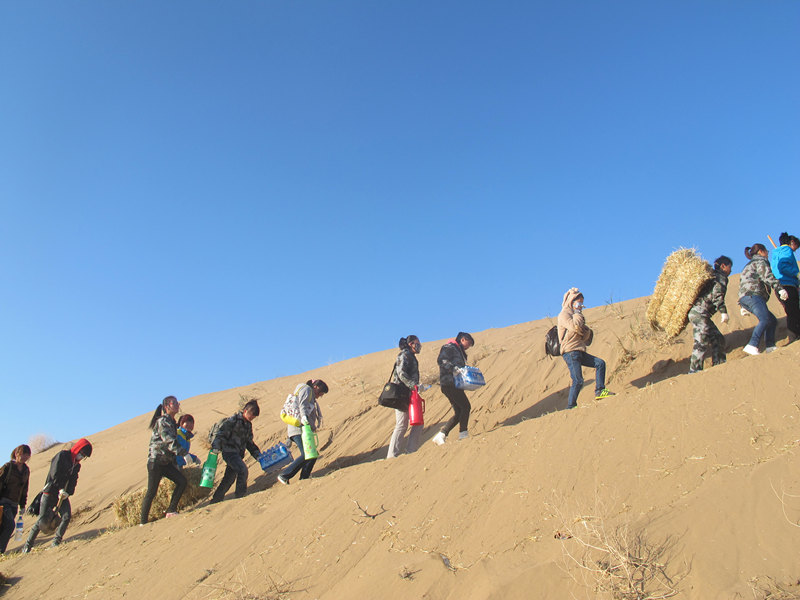 111,我系師生積極參加學(xué)院開展的洪水河畔騰格里沙漠腹地春季治沙造林綠化行動(dòng)。