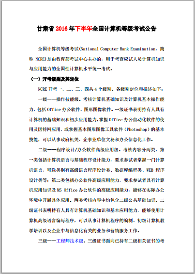 6.請(qǐng)各教學(xué)系將《甘肅省2016下半年全國(guó)計(jì)算機(jī)等級(jí)考試公告》等信息傳達(dá)到每個(gè)考生。