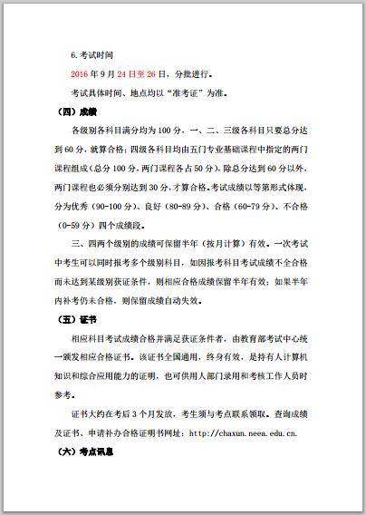 4.考生在2016年9月10—23日在網(wǎng)上打印準(zhǔn)考證并在規(guī)定的時(shí)間參加考試。