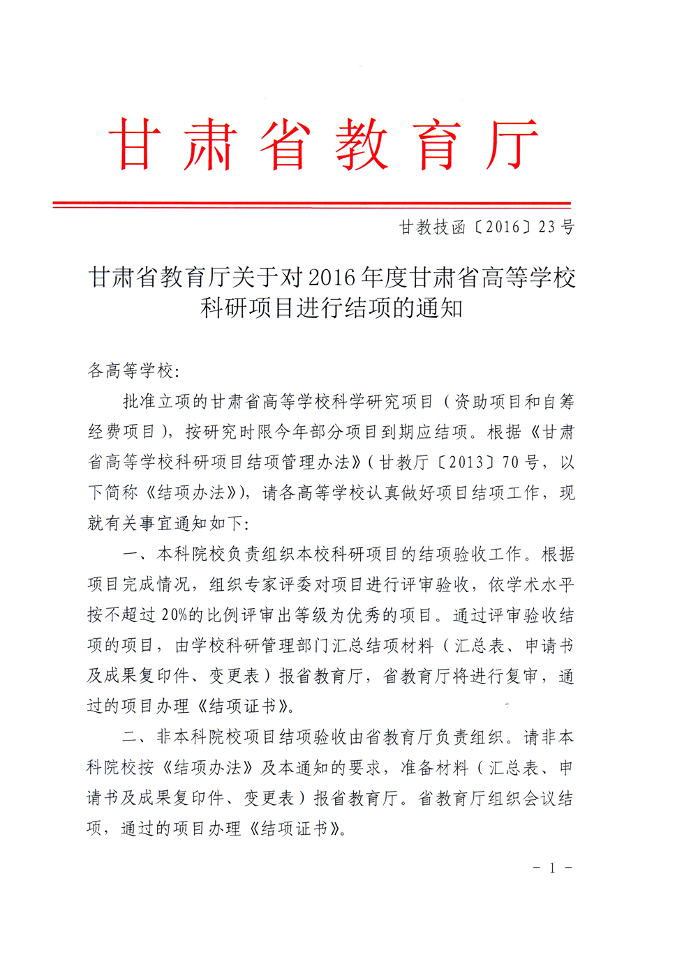 附件: 1.甘肅省高等學(xué)??蒲许?xiàng)目結(jié)項(xiàng)管理辦法