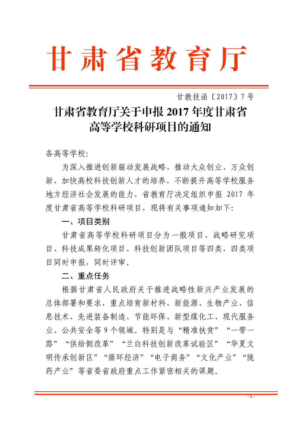 甘肅省教育廳關(guān)于申報2017年度甘肅省高等學(xué)??蒲许椖康耐ㄖ?/h1>