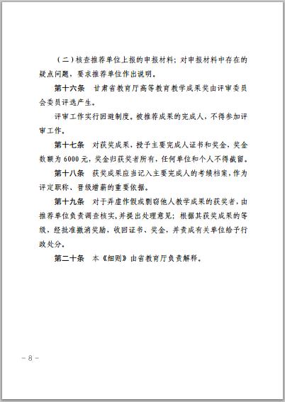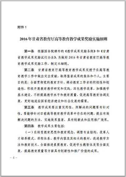 甘肅省教育廳關(guān)于開展2016年高等教育教學(xué)成果獎勵工作的通知