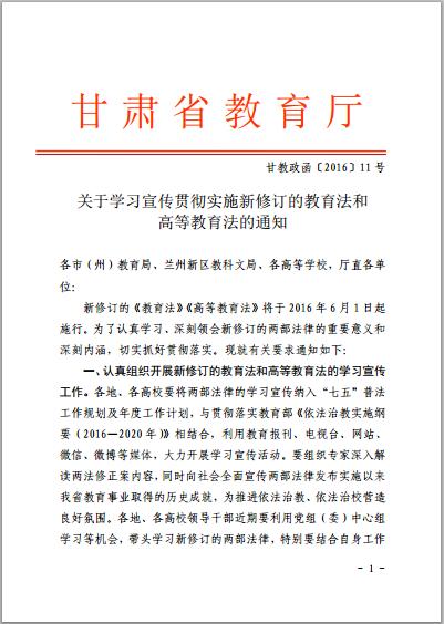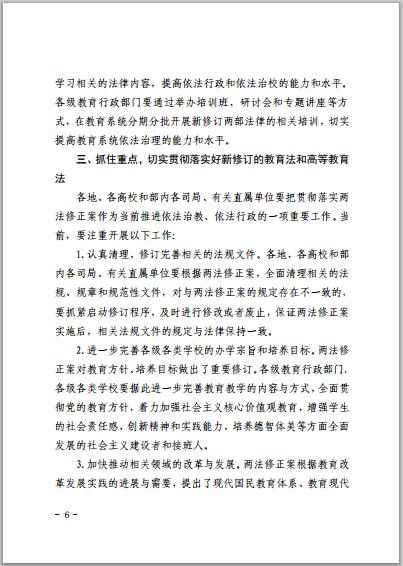 關于學習宣傳貫徹實施新修訂的教育法和高等教育法的通知