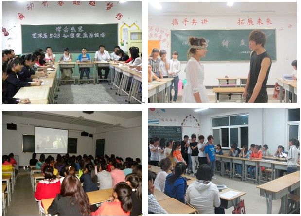 本次活動內(nèi)容豐富,形式多樣,主要包括心理健康主題班會、心理電影賞析、心理游戲、心理知識競賽、心理健康專題黑板報、心理座談會等,由各系選擇性組織開展,吸引了眾多學生參與。活動分3個階段,5月5日至10日為宣傳動員階段,學生處負責策劃安排活動內(nèi)容,下發(fā)通知;5月11日—15日為準備啟動階段,各系選報活動項目;5月16日—28日為實施階段,各系組織開展活動;5月28日—31日為總結(jié)階段,各系總結(jié),上報活動資料,心理健康教育中心歸納總結(jié)。