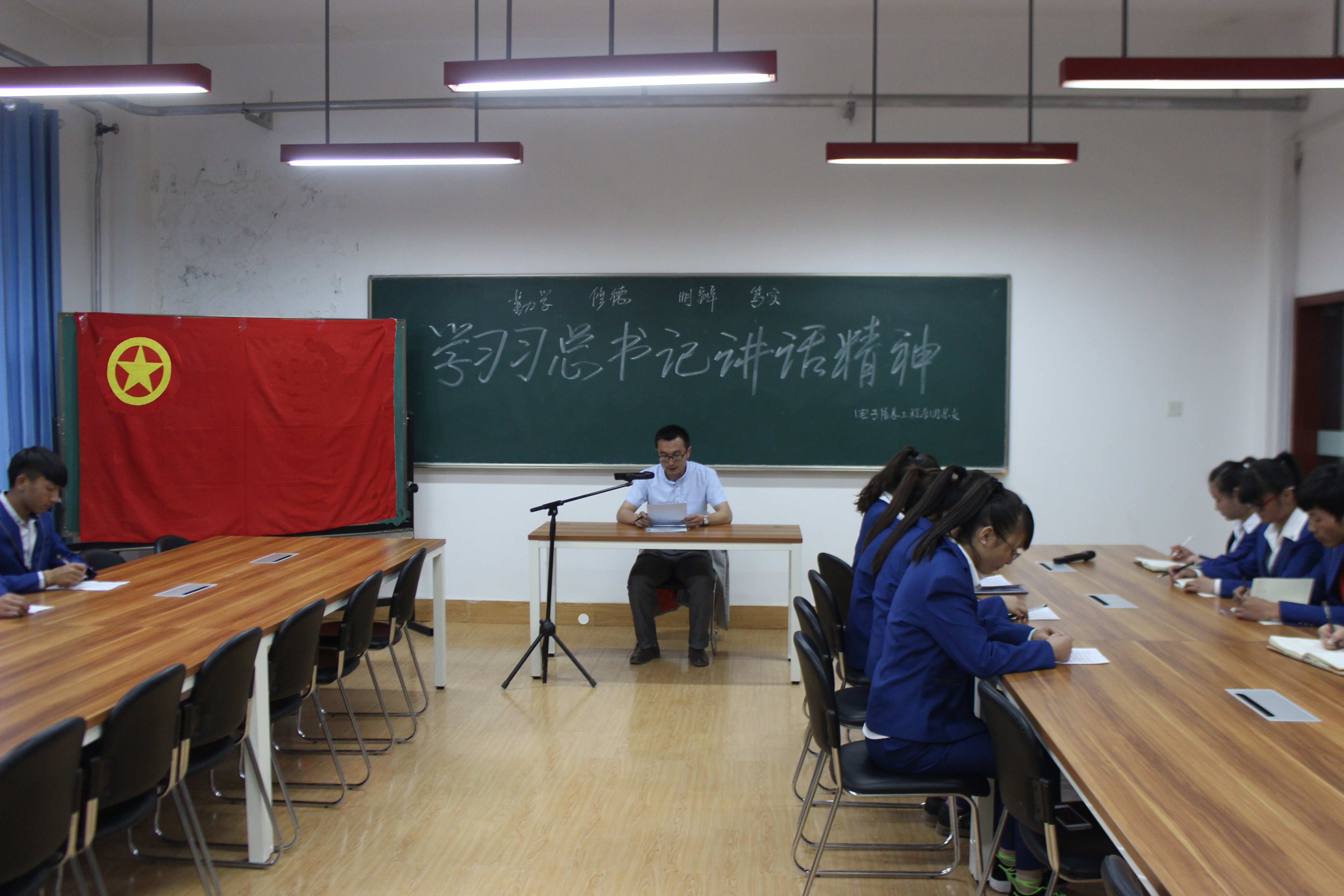 為使學生更好地學習和踐行習近平總書記的系列講話精神,牢固同學們對黨的科學理論的信仰,電子信息工程系團總支于2015年5月5日在尚德樓5樓計算機教研室開展學習習近平總書記講話精神“四進四信”活動暨“如何練好習大大傳授的‘八字真經(jīng)’”主題團日活動,活動由電子信息工程系團總支書記唐宗舜老師主持,各班團學干部參加活動。