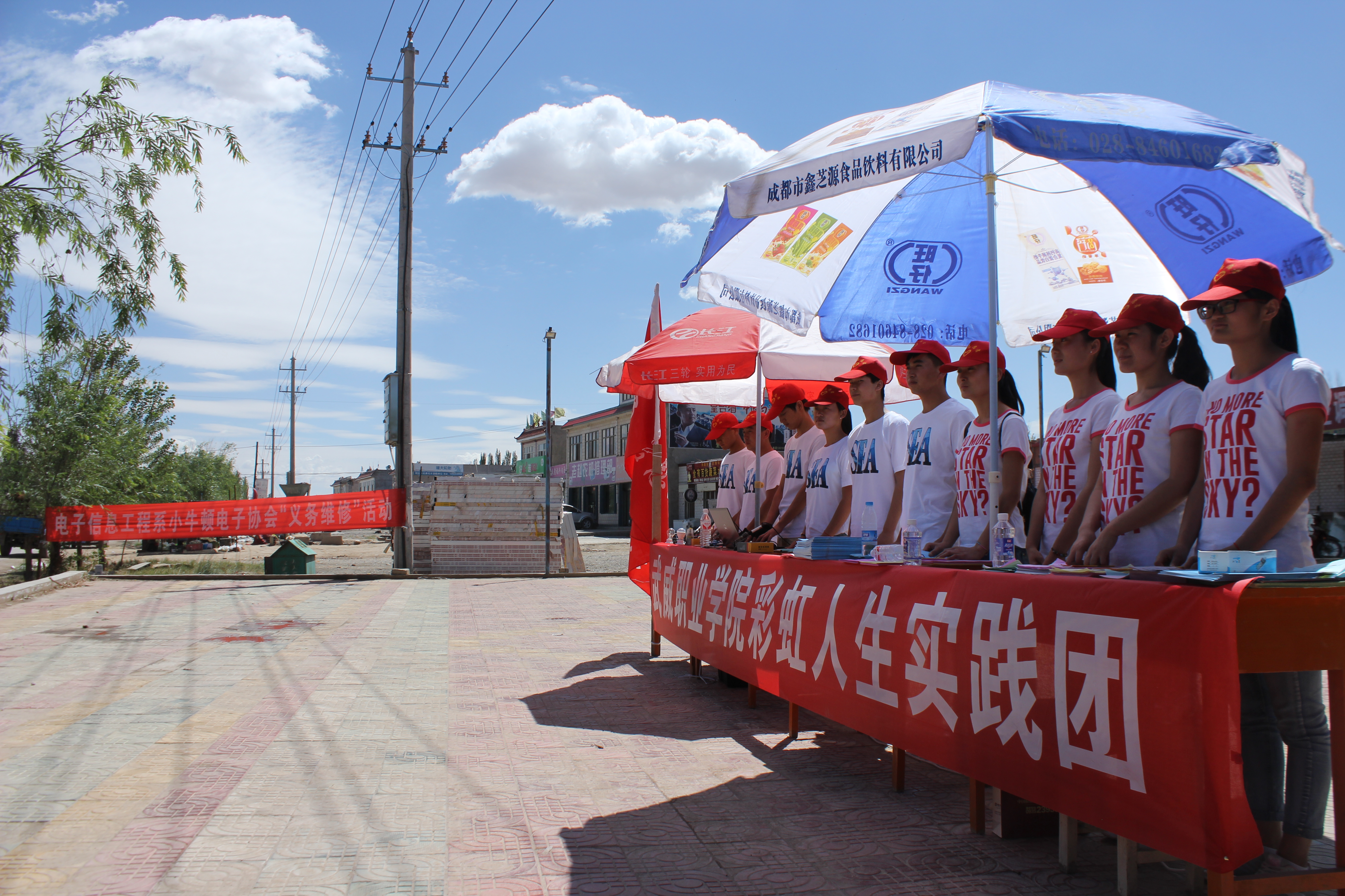 本次暑期“三下鄉(xiāng)”社會實(shí)踐活動得到了學(xué)院領(lǐng)導(dǎo)和院團(tuán)委的高度重視,于2015年7月17日舉行了出征儀式。武威職業(yè)學(xué)院“彩虹人生”實(shí)踐服務(wù)團(tuán)由電子信息工程系黨總支書記張伯成帶隊(duì),唐宗舜、鄧偉華老師組織,2015年7月17日-20日分別赴涼州區(qū)雙城鎮(zhèn)、長城鄉(xiāng)和古浪縣黃花灘鄉(xiāng)等農(nóng)村基層開展了交通安全、環(huán)境保護(hù)、節(jié)能減排宣傳和送科技下鄉(xiāng)“義務(wù)維修”服務(wù)活動。本次活動共為村民發(fā)放各類宣傳資料2300多份,義務(wù)維修家電100余件。