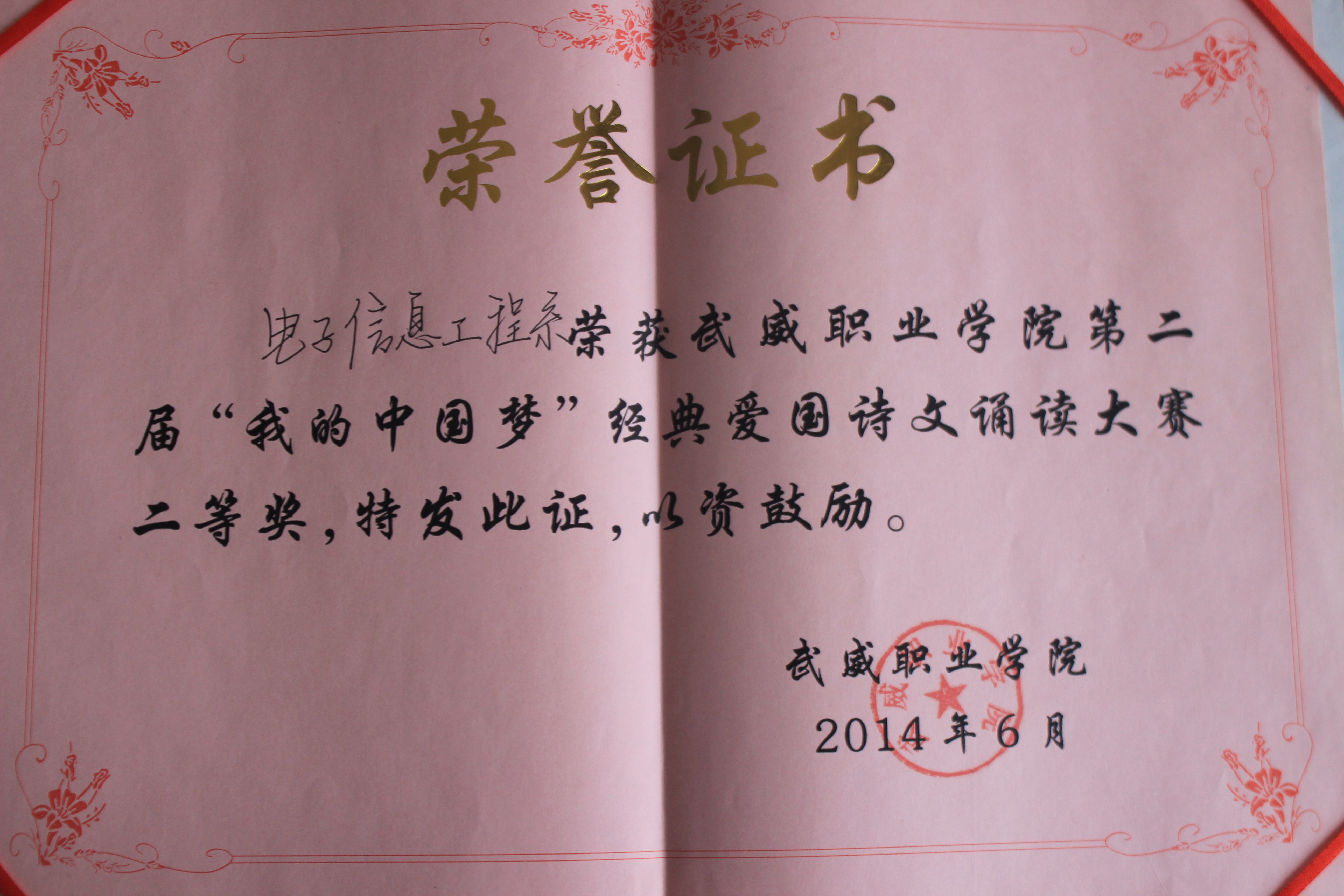 第二屆“我的中國夢”經(jīng)典愛國詩文誦讀大賽-二等獎