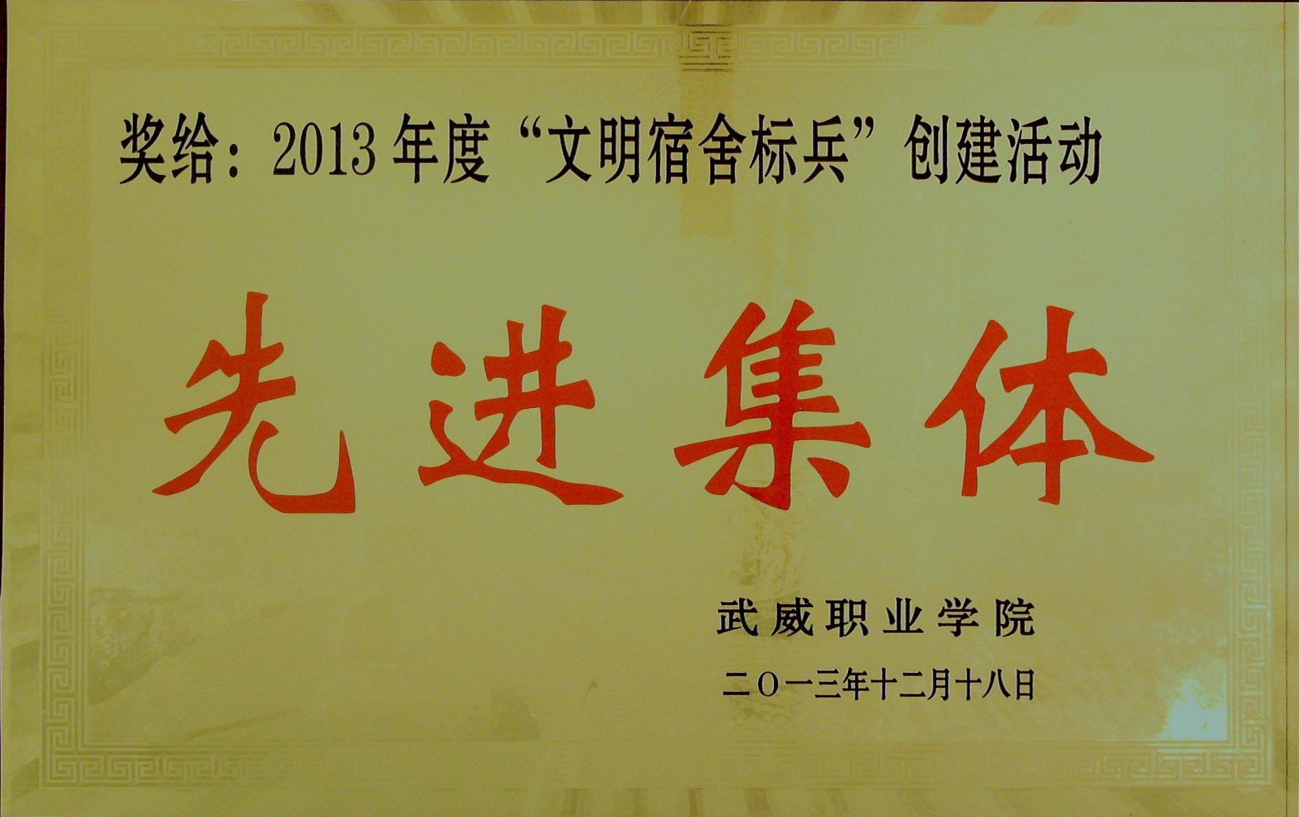 2013年“文明宿舍標(biāo)兵”創(chuàng)建活動先進(jìn)集體獎