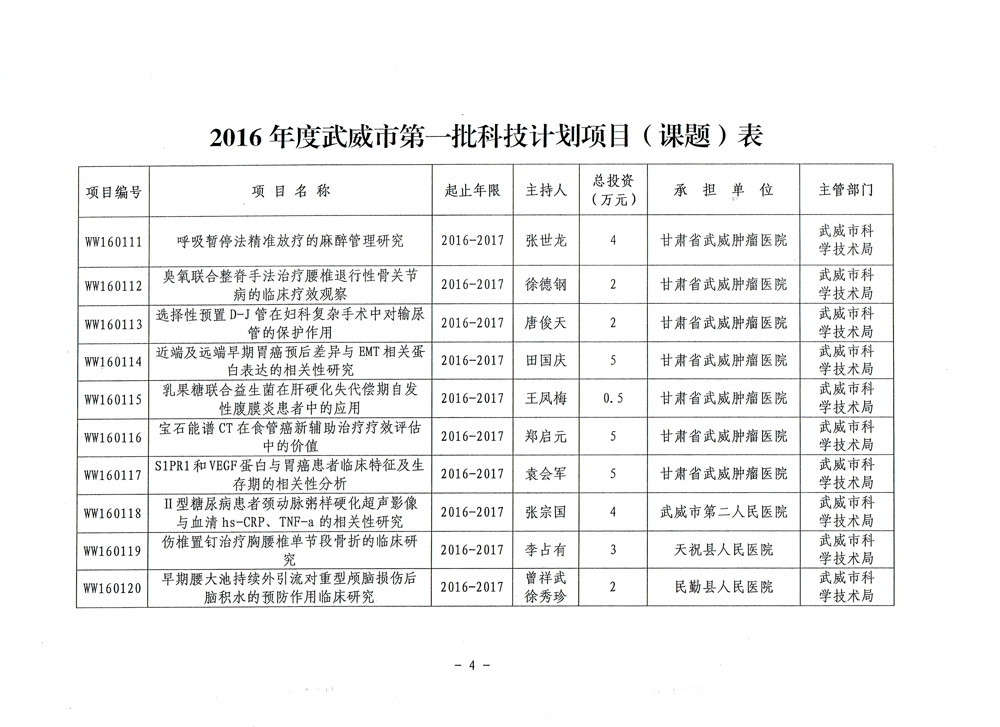 武威市科學技術局關于下達2016年度武威市第一批科技計劃項目的通知