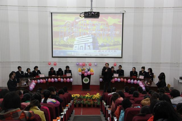 2012年11月7日晚,學(xué)院東階梯教室燈火輝煌,座無虛席。經(jīng)過組委會(huì)師生的精心籌備,經(jīng)濟(jì)管理系第五屆大專生百科知識(shí)競(jìng)賽決賽在廣大師生的期盼中順利拉開了帷幕。學(xué)院副院長(zhǎng)王永緒、教務(wù)處處長(zhǎng)魏潤(rùn)民、學(xué)生處處長(zhǎng)潘從民、院團(tuán)委副書記王政、經(jīng)濟(jì)管理系主任邸光才、黨總支書記白玉珍及經(jīng)濟(jì)管理系全體老師出席了決賽。