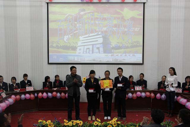 競(jìng)賽結(jié)束后,王院長(zhǎng)揭曉了本次比賽的全部獎(jiǎng)項(xiàng),并對(duì)比賽中各代表隊(duì)的不俗表現(xiàn)給予了高度評(píng)價(jià)。他認(rèn)為經(jīng)濟(jì)管理系本次“百科知識(shí)競(jìng)賽”集知識(shí)性與趣味性于一體,既豐富了學(xué)生的課余生活又拓寬了學(xué)生的知識(shí)面,在大學(xué)校園中非常必要,以后要多舉辦類似的活動(dòng)。隨后,經(jīng)管系黨總支白書記作了總結(jié)講話,白書記首先對(duì)本次競(jìng)賽取得圓滿成功表示祝賀,向在百忙之中抽出時(shí)間來參加活動(dòng)的領(lǐng)導(dǎo)及老師表示衷心的感謝,并對(duì)本次組委會(huì)師生付出地辛勤勞動(dòng)予以肯定!白書記希望,全體同學(xué)能以此次知識(shí)競(jìng)賽活動(dòng)為契機(jī),勤奮學(xué)習(xí)、苦練技能,奮力拼搏,成為優(yōu)秀的應(yīng)用性人才。
