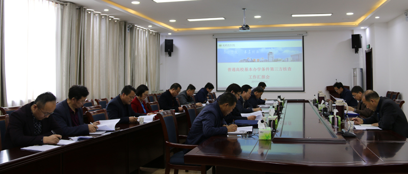 學(xué)院召開匯報(bào)會(huì),李引珍就本次核查的具體要求作了說(shuō)明。院長(zhǎng)、黨委副書記宗瑞謙圍繞學(xué)院師生比、研究生學(xué)位專任教師比例、生均教學(xué)行政用房、生均圖書、生均教學(xué)儀器設(shè)備值、生均占地面積、生均宿舍面積7項(xiàng)基本辦學(xué)指標(biāo)和我院2016年招生計(jì)劃執(zhí)行情況、專業(yè)設(shè)置、畢業(yè)生就業(yè)情況3項(xiàng)重點(diǎn)內(nèi)容作了匯報(bào)。