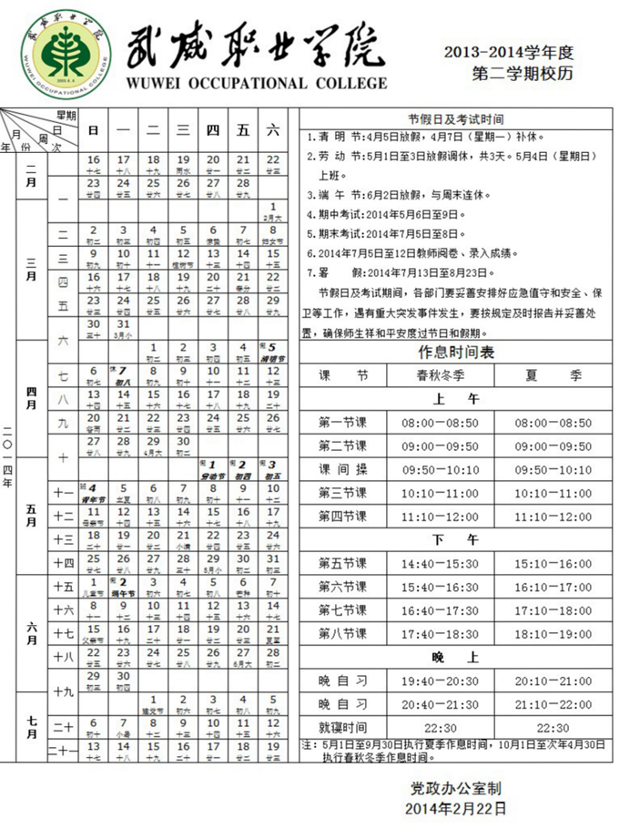 2013-2014學(xué)年度 第二學(xué)期校歷