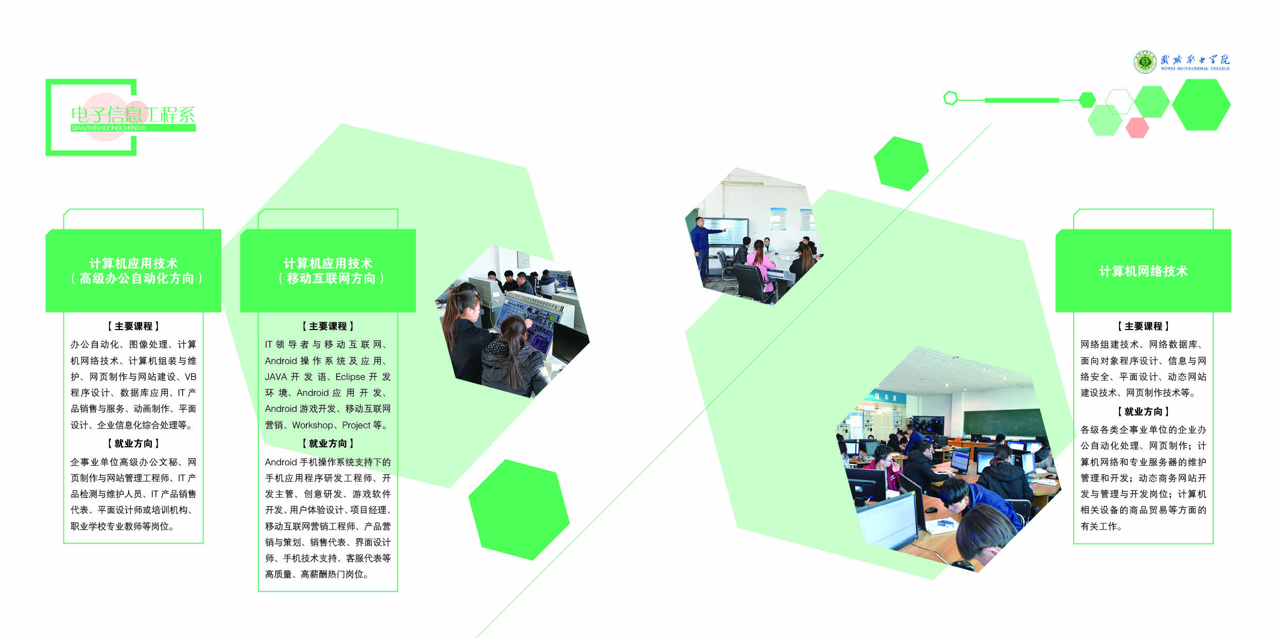 主要課程:辦公自動化、圖像處理、計算機網(wǎng)絡(luò)技術(shù)、計算機組裝與維護、網(wǎng)頁制作與網(wǎng)站建設(shè)、VB程序設(shè)計、數(shù)據(jù)庫應(yīng)用、IT產(chǎn)品銷售與服務(wù)、動畫制作、平面設(shè)計、企業(yè)信息化綜合處理等。