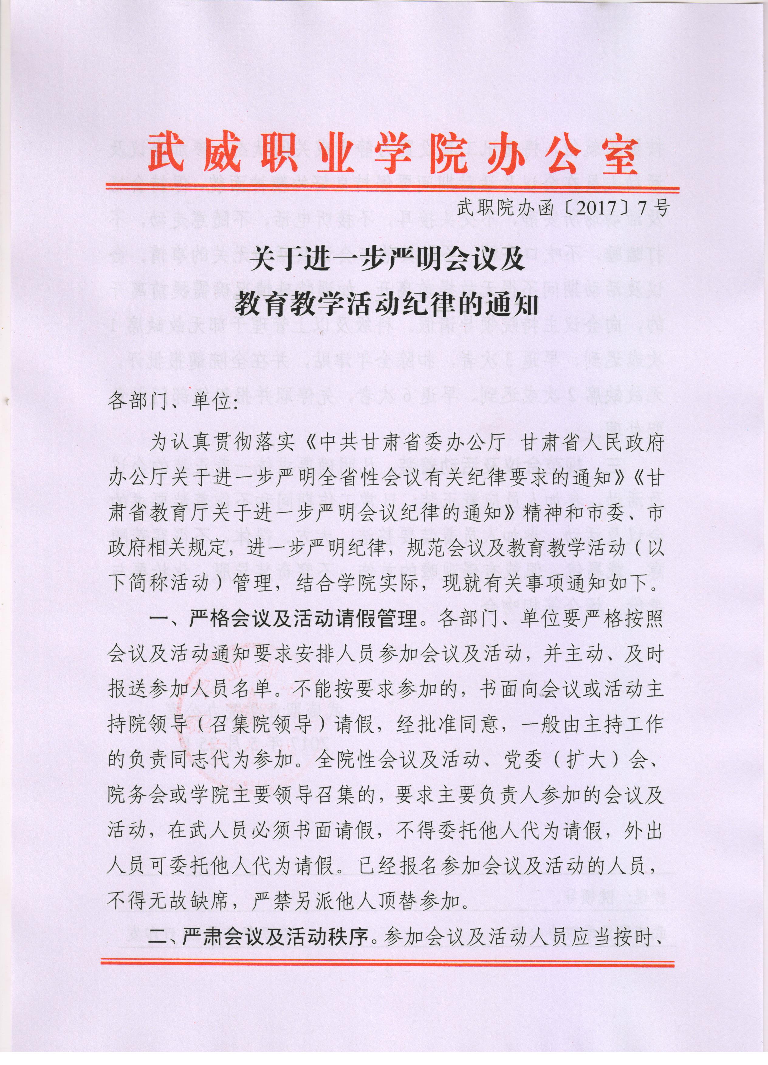 關(guān)于進(jìn)一步嚴(yán)明會議及教育教學(xué)活動紀(jì)律的通知