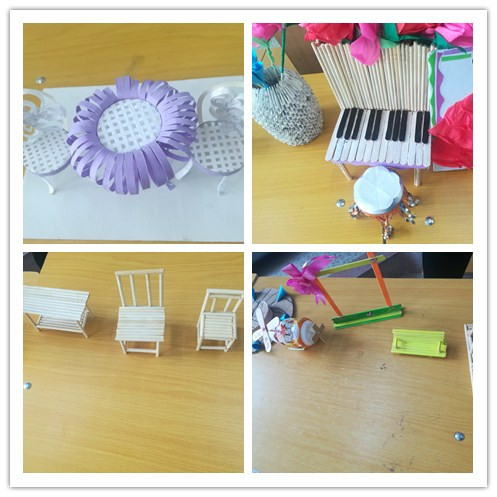 活動(dòng)中,指導(dǎo)老師要求學(xué)生們充分利用身邊廢棄的飲料瓶、廢紙、塑料、布料、木料等廢舊材料,通過自己的創(chuàng)意,制作出體現(xiàn)科技、環(huán)保的工藝作品?;顒?dòng)布置后,同學(xué)們積極參與,充分利用網(wǎng)絡(luò)搜集相關(guān)資料及設(shè)計(jì)圖案,憑借豐富的想象力和創(chuàng)造力,將生活中的廢品制作成了各種各樣的手工藝術(shù)品。