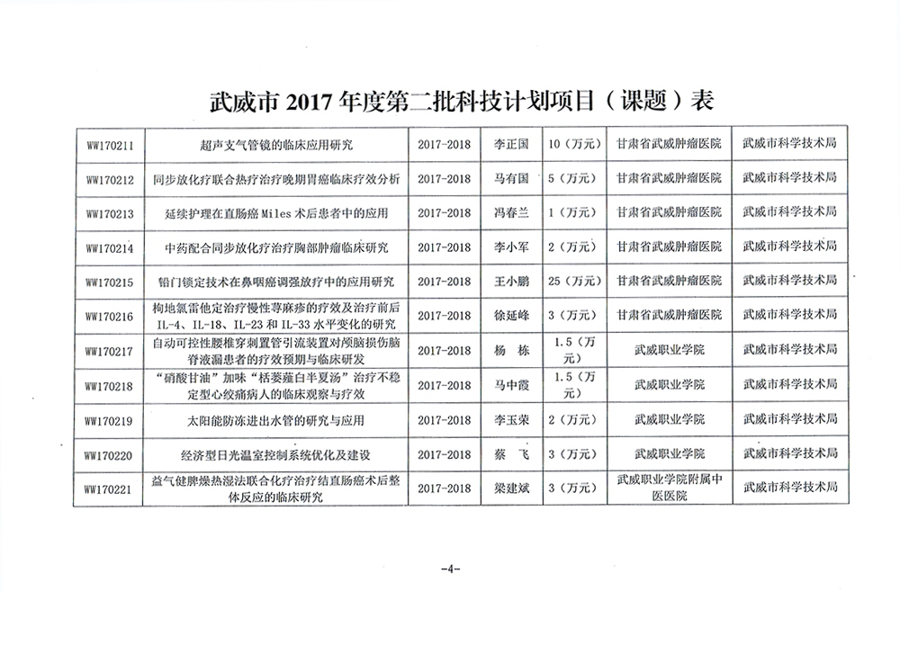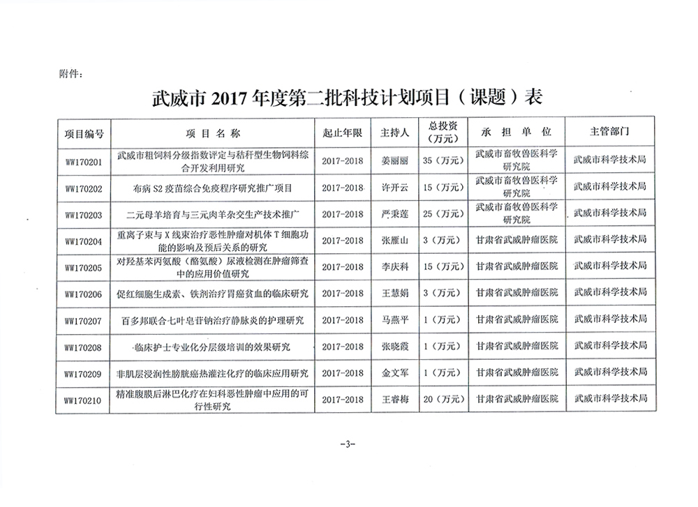轉發(fā)武威市科學技術局關于下達武威市2017年度第二批市列科技計劃項目的通知