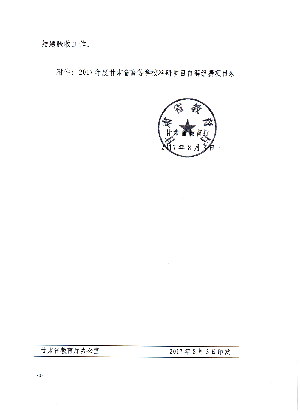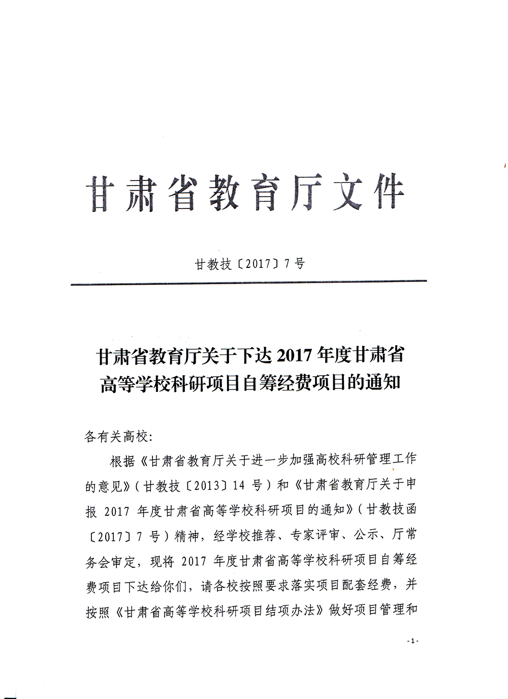 轉發(fā)甘肅省教育廳《關于下達2017年度甘肅省高等學校科研項目自籌經(jīng)費項目的通知》
