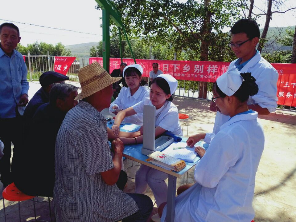 2017年暑假期間,護(hù)理系積極響應(yīng)院團(tuán)委暑期“三下鄉(xiāng)”社會(huì)實(shí)踐活動(dòng)的號(hào)召,組織11名學(xué)生成立了“愛心醫(yī)療服務(wù)團(tuán)”,赴武威市新井村、張義鎮(zhèn)、武威第十一中學(xué)、小洪溝河灣村、沙金臺(tái)村等多地開展了為期6天的社會(huì)實(shí)踐活動(dòng)。