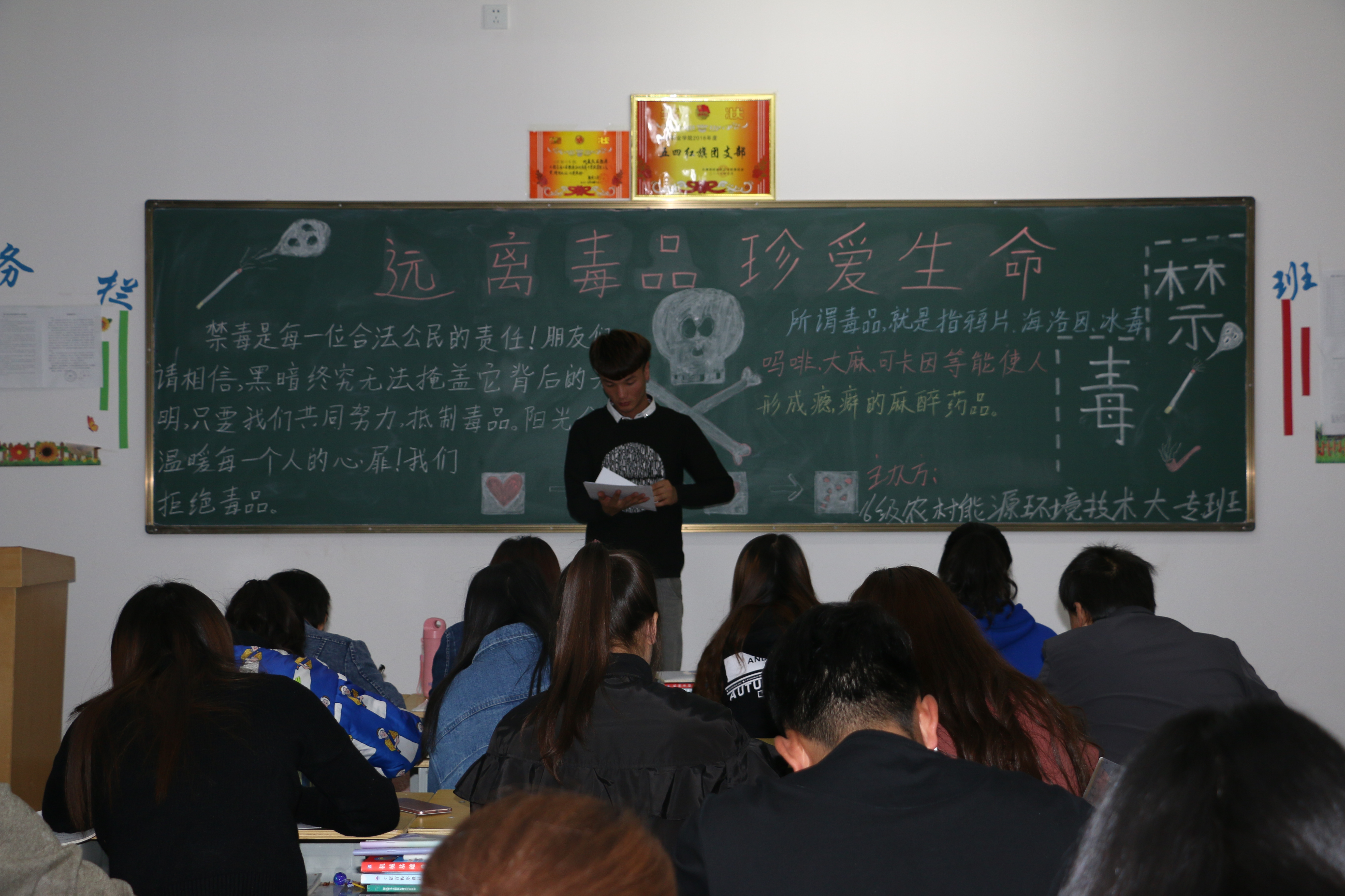 為了讓廣大師生充分認(rèn)識毒品的危害,從而遠(yuǎn)離毒品,拒絕毒品,通過學(xué)生影響家長和身邊的人遠(yuǎn)離毒品,根據(jù)武威職業(yè)學(xué)院保衛(wèi)處下發(fā)的《關(guān)于開展禁毒宣傳活動的通知》要求,近日,能源工程系組織各班開展了系列禁毒宣傳教育活動。