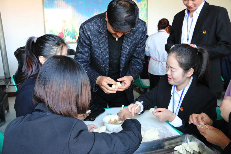 上午八點(diǎn)半,醫(yī)學(xué)技術(shù)與信息管理系各位黨員、入黨積極分子、團(tuán)學(xué)干部、師生代表在廚房為老人包餃子,并整理被褥;康復(fù)治療專業(yè)教師黨員高萬飛為老人講解“如何健康養(yǎng)生”;系團(tuán)總支為老人們送上毛巾、牙膏、香皂等日常生活用品;愛牙協(xié)會的志愿者為老人,進(jìn)行牙齒檢查,講解如何愛護(hù)牙齒;中醫(yī)養(yǎng)生協(xié)會的志愿者為老人們測血壓,演示常用的按摩方法。中午時分,老人們吃著熱氣騰騰的餃子,看著全系師生代表為老人們準(zhǔn)備的精彩節(jié)目,臉上洋溢著幸福的笑容。