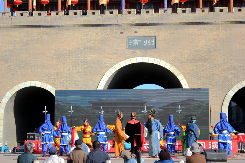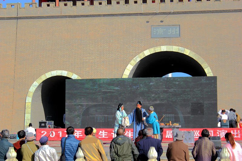 上午10.00時(shí)許,秦腔《皇甫謐》在露天舞臺正式演出?,演員們精彩的表演吸引了數(shù)百名群眾駐足觀看,場面十分熱烈。