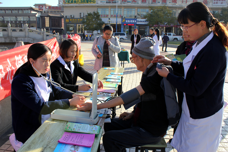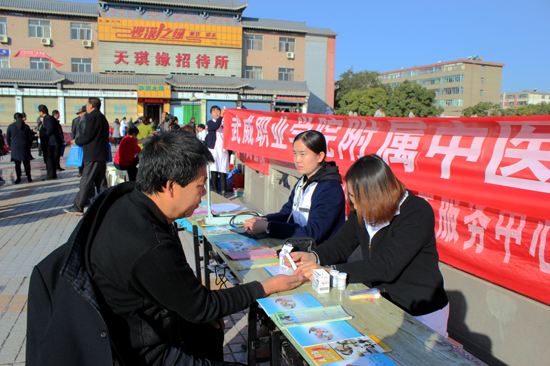 11 月1,為配合2017年甘肅衛(wèi)生計(jì)生題材劇目秦腔《皇甫謐》在武威成功上演,根據(jù)市衛(wèi)生計(jì)生委安排,直屬附屬醫(yī)院派出醫(yī)生李生海、護(hù)士許海燕等醫(yī)務(wù)人員組成的醫(yī)療小分隊(duì),與其他10余家醫(yī)療衛(wèi)生單位的醫(yī)務(wù)人員一道,在武威南城門廣場開展便民義診服務(wù)活動(dòng)。